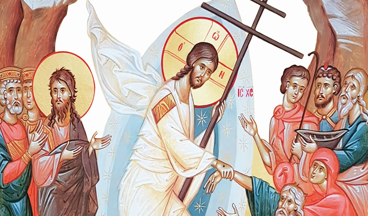Venind mai înainte de zori cele ce au fost cu Maria şi găsind piatra rasturnată de pe mormânt, auzit-au de la înger: Pentru ce-L căutaţi printre morţi, ca pe un om, pe Cel ce este întru lumina cea pururea fiitoare? Vedeţi giulgiurile cele de îngropare! Alergaţi şi vestiți lumii că S-a sculat Domnul, omorând moartea, că este Fiul lui Dumnezeu, Cel Ce mântuieşte neamul omenesc.
