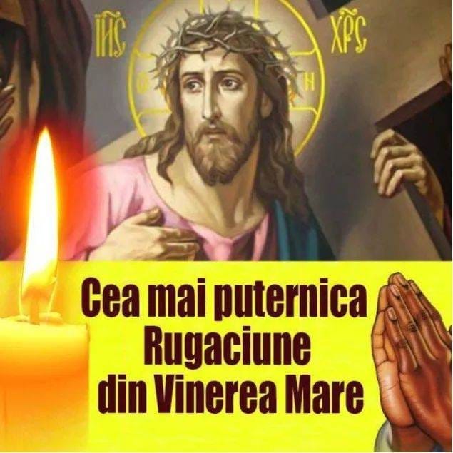 Vinerea Mare sau Vinerea Patimilor este considerată ziua cea mai neagră din istoria Creştinismului deoarece este ziua în care Iisus a fost biciuit, scuipat şi răstignit între doi tâlhari. În Vinerea neagră, Iisus Hristos a murit pentru mântuirea lumii. În această zi importantă se rostește o anumită rugăciune pentru iertarea păcatelor și îndepărtarea necazurilor.