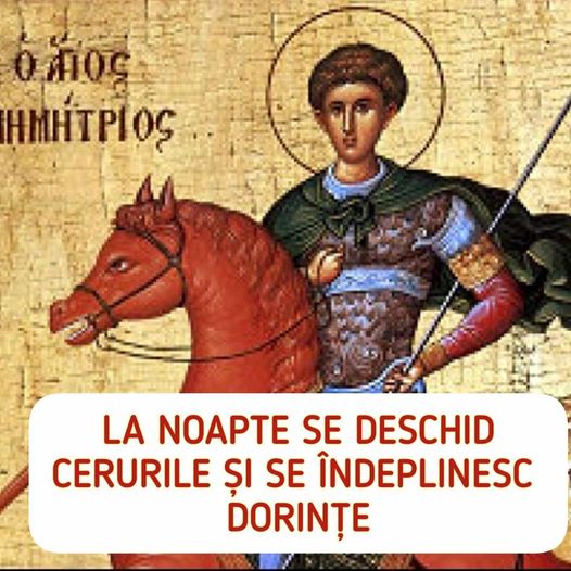 Rugăciunea adresată Sfântului Mare Mucenic Dimitrie Izvorâtorul de Mir, rostită în momentele de mare cumpănă, a adus în viața credincioșilor care o rostesc neașteptate împliniri, alungând din viața lor ura, răzbunarea și viclenia dușmanilor știuți și neștiuți. Rostiți și cuvinte de mulțumire după ce Marele Mucenic Dimitrie vă scapă de necaz.