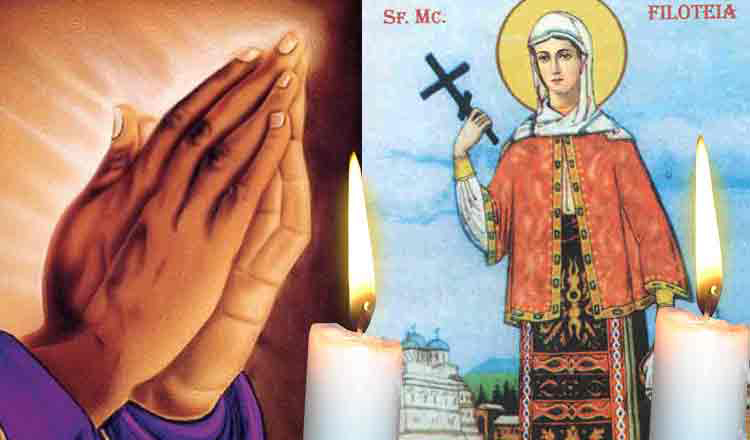 Fie-ți milă și roagă-te lui Dumnezeu pentru noi, ca să strigăm ție «Bucură-te, fecioară, mare muceniță Filoftee, de binele și liniștirea ce ne-ai adus-o de Mântuitorul Iisus Hristos și primește smerita mea rugăciune pentru iertarea păcatelor mele, acum și pururea și în vecii vecilor. Amin!”