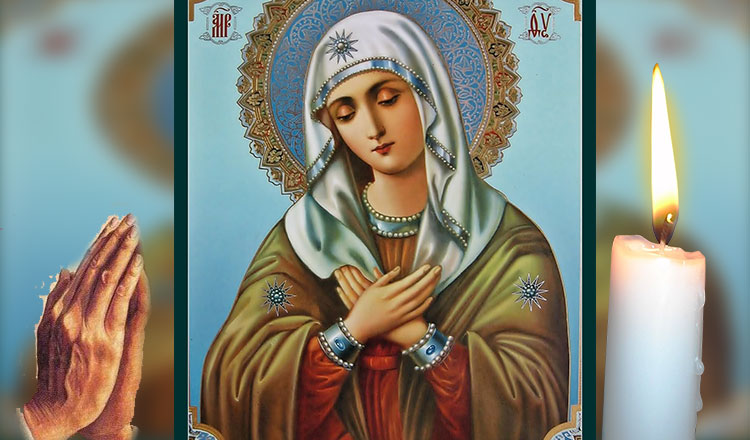 „O, Preasfântă Născătoare de Dumnezeu, mă îndrept plin de încredere către tine, cerându-ți ajutor! Cred cu adevărat că mă vei asculta în necazul meu și mă vei sprijini atunci când îmi este mai greu.