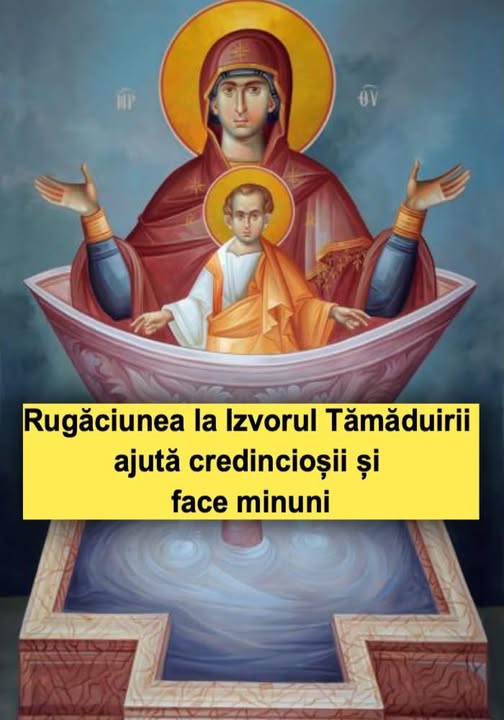 „Pe Fântâna cea pururea nesecată și înviorătoare, pe Dumnezeiescul Izvor din care țâșnesc șuvoaie de apă, într-un glas să lăudăm! Cei ce îi cerem darul. Că în fiecare zi curge. Și arată tămăduirile ca pe curgerile râurilor. Pentru aceasta, după datorie apropiindu-ne cu dragoste, să scoatem cu credință din Izvor putere neîmpuținată și cu adevărat fără de moarte. Care rourează arătat inimile celor binecredincioși. Și cu buzele să rostim: Tu ești mângâierea credincioșilor.