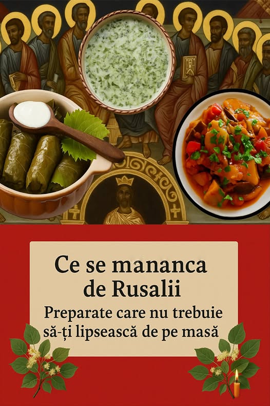De Rusalii, exista multe traditii populare, dar si randuieli bisericesti. Traditiile culinare de Ruslaii, sunt, de asemenea importante, intrebarea ”ce se mananca de Rusalii” fiind acum pe buzele multor gospodine. Mancarea trebuie sa fie, in principal, de sezon, din legume proaspete. Totodata, de Rusalii, este ultima data cand se mai poate prepara pasca, aceasta fiind preparata, din nou, de Paste. Apoi, alte preparate care nu trebuie sa-ti lipseasca sunt sarmalutele in foi de vita, ciorba cu multe verdeturi si tocana de legume, noteaza Antena 1.