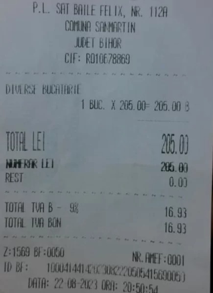 „diverse bucătărie” și 205 lei – aceasta era singura mențiune pe bon, a povestit clienta.