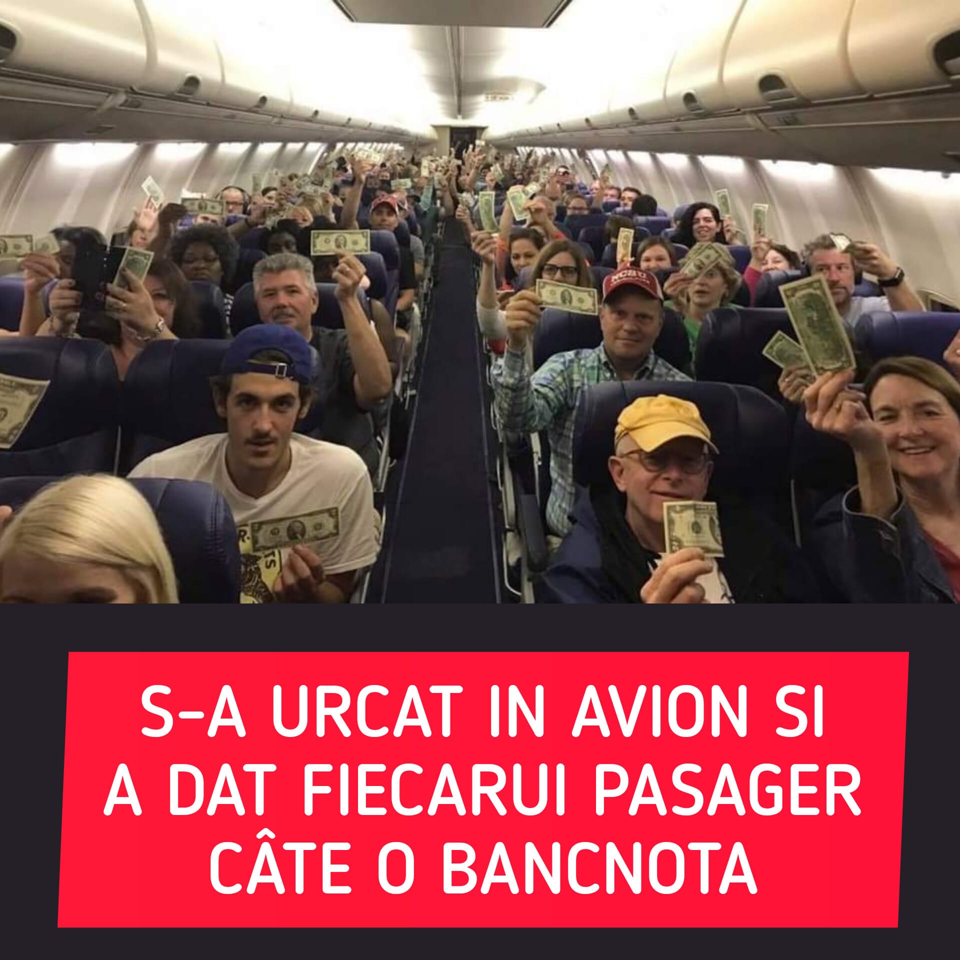 În seara aceasta, bărbatul și-a onorat tatăl și a dat tuturor pasagerilor acestui zbor (aproape plin) câte o bancnotă de 2 dolari, pentru a nu fi niciodată săraci.