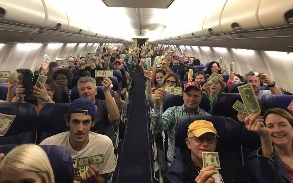În seara aceasta, bărbatul și-a onorat tatăl și a dat tuturor pasagerilor acestui zbor (aproape plin) câte o bancnotă de 2 dolari, pentru a nu fi niciodată săraci.