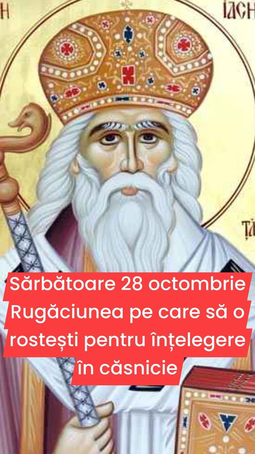 Sărbătoare 28 octombrie. Această zi este una importantă pentru români, în calendar fiind prăznuiți mai mulți sfinți: Sfântul Ierarh Iachint, mitropolitul Ţării Româneşti, Sfinții Mucenici Terentie, soţia sa Neonila şi cei 7 fii, precum și Sfântul Ierarh Firmilian, episcopul Cezareei Capadociei.