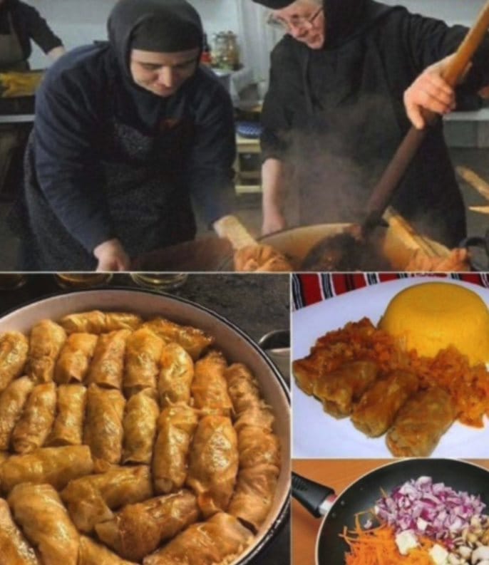 Mai tinem pe foc inca 1-2 minute. Luam frunza de varza in mana si punem compozitia de ciuperci cu orez