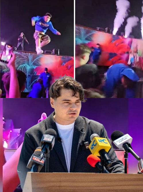 La finalul momentului, artistul american l-a indemnat pe tanar sa sara direct inapoi in multime, de la o inaltime de aproximativ trei metri. Terenul de sub scena nu era pregatit pentru un astfel de gest, iar Nicolas a cazut in plin peste un gard metalic ce delimita scena de public.