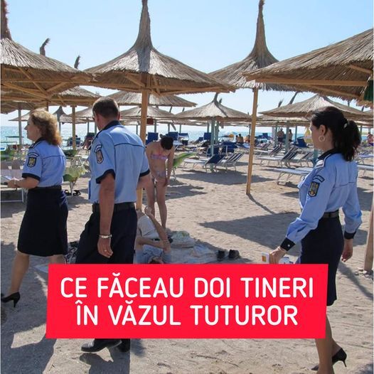 Pe plajă, tinerii au observat un echipaj de jandarmi îndreptându-se spre ei și au devenit vizibil agitați, încercând să plece rapid din zonă. Suspiciunile jandarmilor au fost alimentate de un miros puternic de „iarbă” în aer, iar aceștia au decis să îi oprească pe cei doi pentru verificări suplimentare.