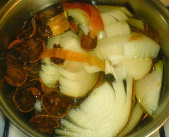 capac se pun la fiert ceapa si nucile si se fierb la foc mic 30 de minute. Siropul de ceapa preparat cu tot cu coaja, are o culoare galbui inchis spre rosu si