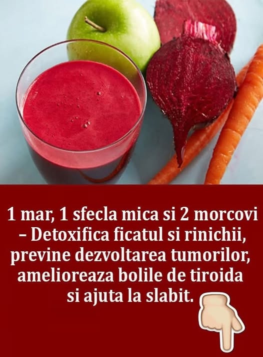 Iată ce ai nevoie pentru a prepara acest remediu: 1 sfeclă mică, 2 morcovi și 1 măr. Cum procedezi mai departe: Stoarce sucul din aceste ingrediente, fără a le amesteca.