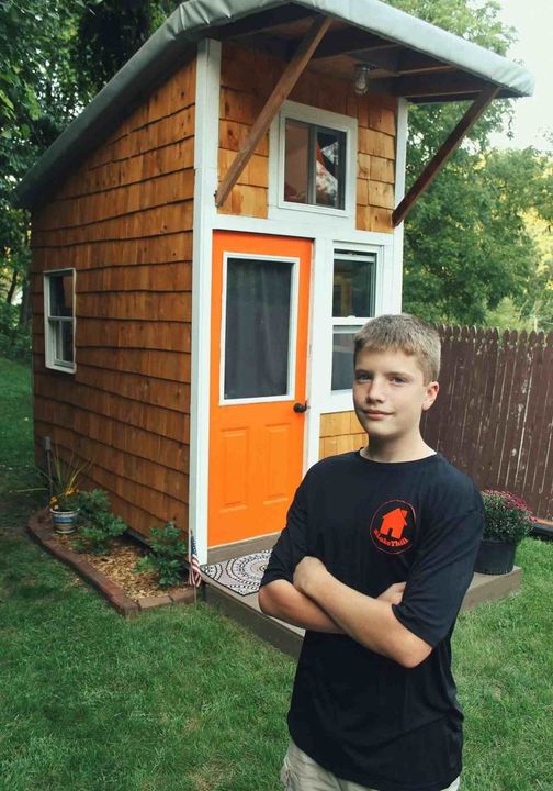 Luke Thill, în vârstă de 13 ani, a strâns 1.500 de dolari și a petrecut aproape un an construind o casă mică în curtea din spate a casei familiei sale din Dubuque, Iowa.