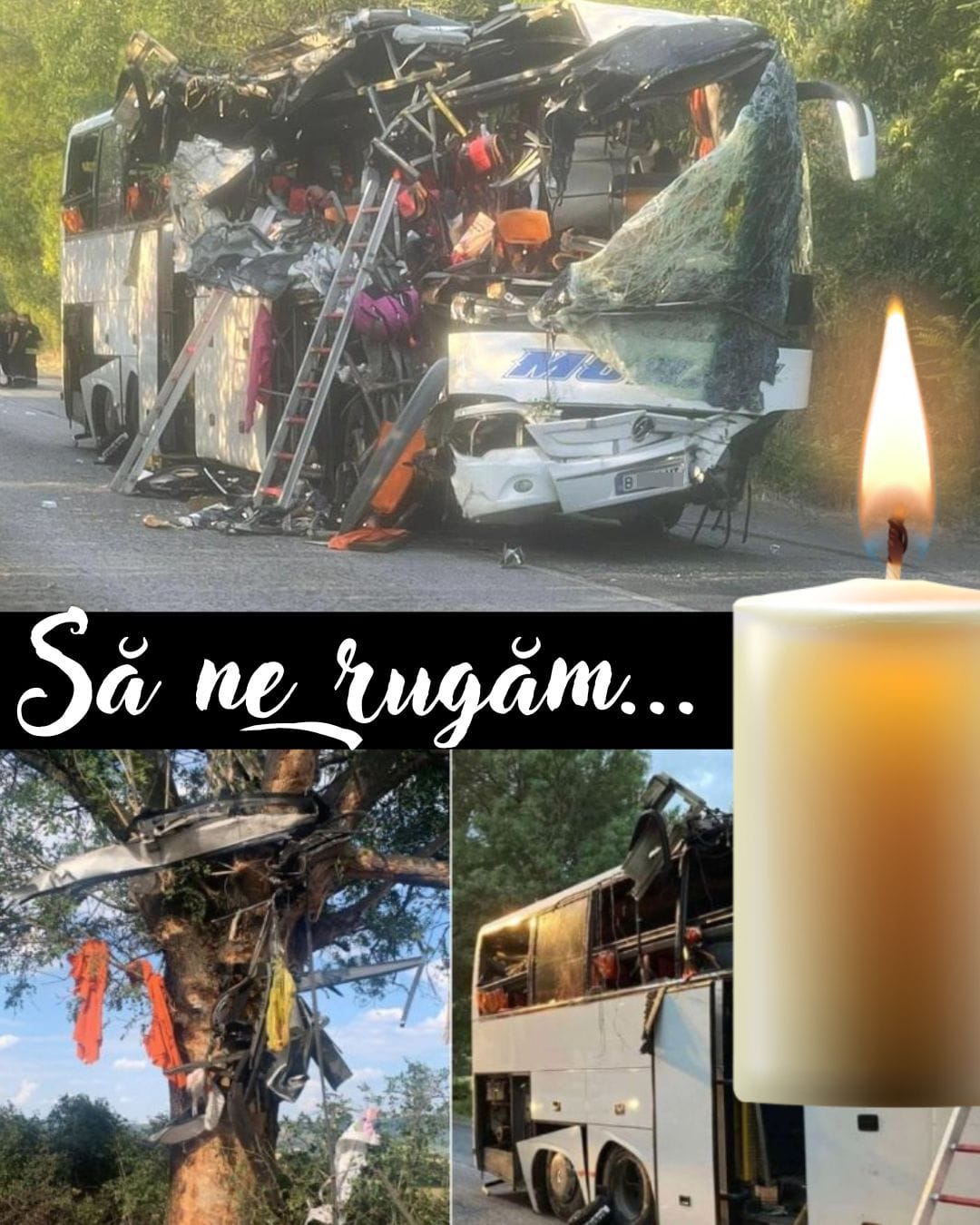 Andreea Petrescu, reporter Observator: Impactul a fost atât de puternic încât, aici, locul accidentului este în continuare împânzit de bucăţi din autocar, dar şi de bagaje ale călătorilor. Mai mult, câteva elemente de caroserie sunt agăţate la trei patru metri în copacul de care s-a izbit.