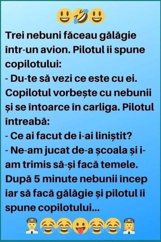 Copilotul se duce la ei și când se întoarce pilotul îl întreabă: