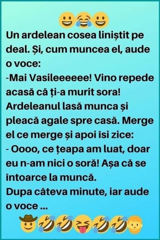Un ardelean cosea liniștit pe deal. Și, cum muncea el, aude o voce:
