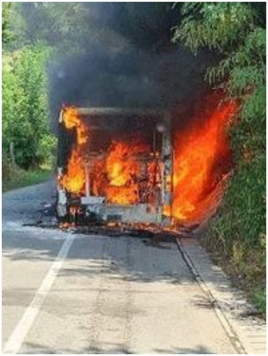 În momentul în care pompierii au ajuns la locul întâmplării, incendiul se manifesta generalizat, la întreg autobuzul, potrivit ISU Bistriţa-Năsăud.