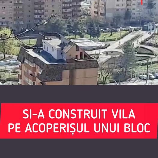 Practic, lângă spațiile tehnice amenajate din construcția imobilului este și o construcție ce seamănă cu o casă, cu terasă. „O casă pe un bloc? Cu toate actele la zi!?….NU CRED! Orașul tuturor posibilităților urbanistice!”, a remarcat Eugen H., autorul filmării.