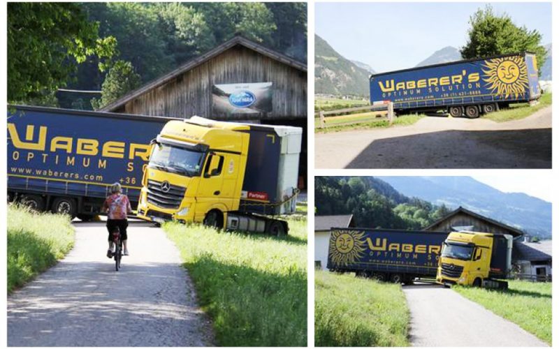 Un camion articulat al companiei maghiare Waberer’s, condus de un șofer polonez, s-a aflat într-o situație foarte stânjenitoare în Austria.Camionagiul polonez a vrut să ajungă în orașul Fügen cu camionul său cu sermiremorcă, a părăsit șoseaua și a vrut să conducă în vale pe drumul federal Zillertal, prin tunelul Brettfall. Totuși, deoarece tunelul este în prezent închis din cauza lucrărilor de întreținere, el a „manevrat” pe autostrada federală tiroliană către Strass și apoi prin St.Gertraudi de cealaltă parte a văii spre Bruck am Ziller, unde a ajuns pe un drum îngust al localității. Voia să se întoarcă spre sudul localității Bruck și a fost prins fără speranță pe câmp. Comandantul pompierilor din Bruck, Johannes Kircher, a ajuns rapid la fața locului și a contactat o companie de salvare a vehiculelor grele. Au trecut mai multe ore cu complicații până când șoferul profesionist de la Waberer’s a putut porni din nou la drum.