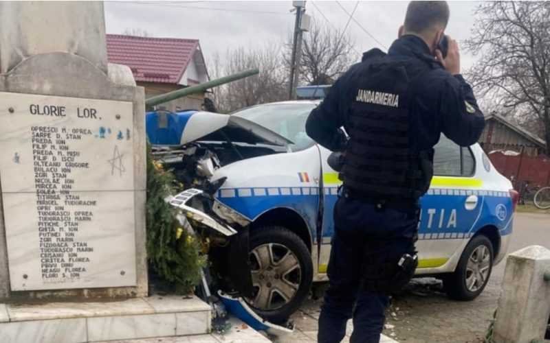 Un polițist din Sadova, județul Dolj a intrat cu autospeciala în Monumentul Eroilor. Agentul a pierdut controlul volanului, după ce a evitat un biciclist.În mașina de poliție se afla și un suspect, un bărbat 67 de ani. El urma să fie transportat la secție pentru audieri, dar până la urmă a fost dus la spital, pentru îngrijiri medicale.Colegii polițistului au deschis un dosar penal, pentru vătămare corporală din culpă.