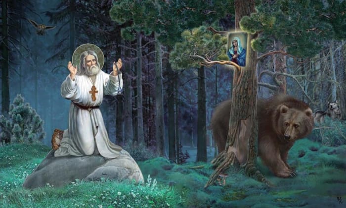 Sfântul Serafim de Sarov s-a născut în anul 1759, în orașul Kursk din Rusia, într-o familie de negustori. Fiind credincios de mic copil, el a intrat la mănăstire la vârsta de 19 ani, iar la 27 de ani era hirotonit diacon, urmând ca la vârsta de 34 de ani, Sf. Serafim să devină preot și duhovnic al mănăstirii de maici Diveevo.