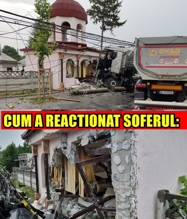 Camionul a lovit mai întâi un stâlp de electricitate, apoi a izbit în plin un zid al capelei bisericii. Circulația a fost oprită