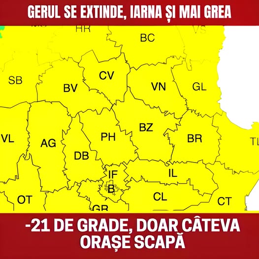 Temperaturile maxime se vor încadra între -10 și 4 grade, cu valori mai ridicate în dealurile subcarpatice și la munte, până spre 5…6 grade, iar cele minime se vor situa între -21 de grade în depresiunile Carpaților Orientali și -2…-1 grade în Dealurile de Vest.