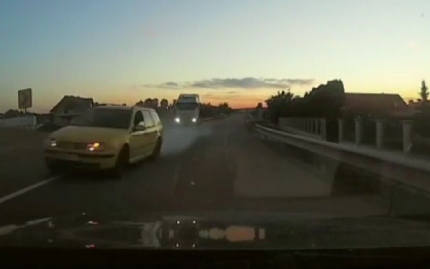 Camera de bord instalată pe maşina unui şofer din Maramureş a surprins momentul în care o maşină cu numere de Bistriţa era cât pe ce să-i izbească pe contrasens, după o depăşire ilegală, pe linie continuă.Cei doi tineri se întorceau spre casă după ce s-au relaxat în staţiunea Colibița. În localitatea Șintereag, au observat că de pe contrasens o maşină de culoare galbenă îşi părăseşte banda pentru a face o depăşire.În imagini se vede cum şoferul intră în depăşire fără să se asigure şi ignoră complet marcajul linie continuă.În câteva fracţiuni de secundă, maşina s-a apropiat extrem de mult de ei şi puţin a lipsit până la o ciocnire frontală. Impactul a fost evitat în ultima clipă.După ce au apărut imaginile în spaţiul public, poliţiştii s-au autosesizat şi au dat de urma şoferului: un tânăr de 18 ani care obţinuse carnetul de conducere în urmă cu doar 6 luni. Acum băiatul a rămas pieton pentru 30 de zileVIDEO AICI