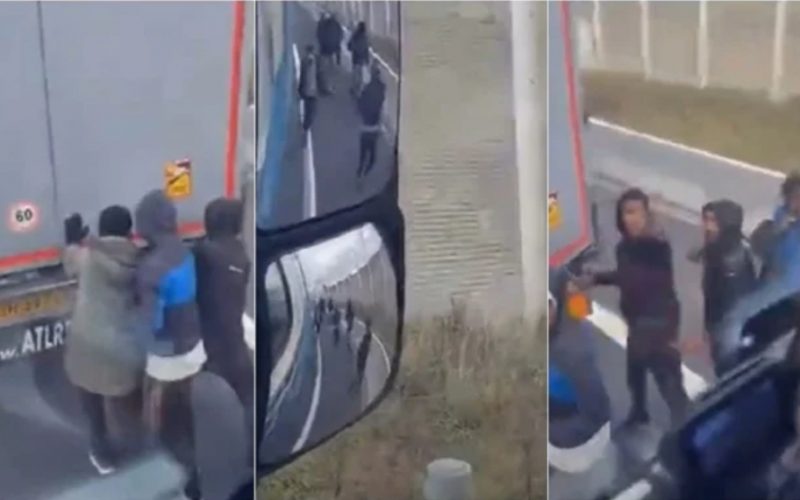 Tirurile atacate de migranți sunt un flagel care se extinde tot mai mult în Franța.Un nou video a apărut pe rețelele de socializare în care un camion este atacat de migranții care încearcă să urce disperați în remorcă.Șoferul de TIR din spate îi observă, îi claxonează și încearcă să atragă atenția. Însă, fără rezultat, migranții îi dau cu pietre în parbriz și continuă să se urce în remorcă.