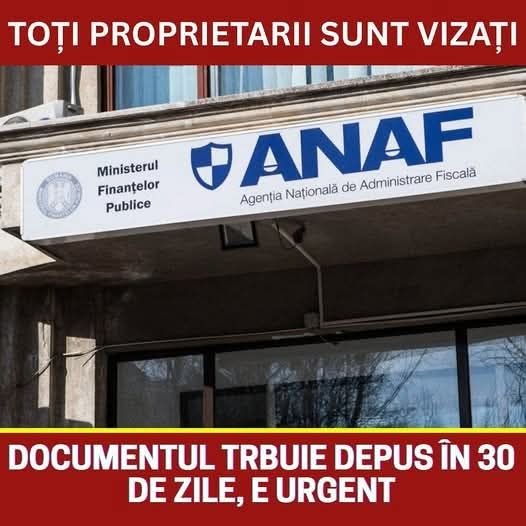 ANAF face un anunț major pentru proprietari. Documentul care trebuie depus urgent în maximum 30 de zile